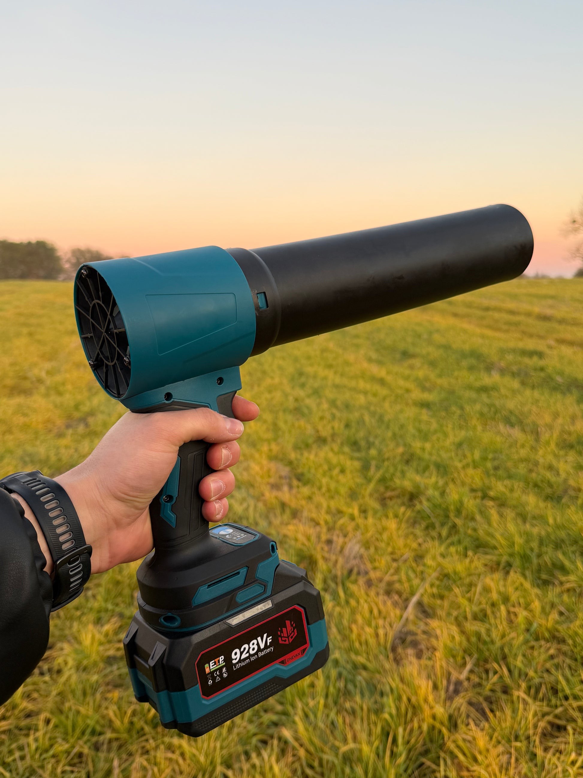 TurboJet Pro™ to nasza flagowa dmuchawa, stworzona z myślą o najbardziej wymagających zadaniach. Ten model łączy ekstremalną moc z niezawodną, roboczą konstrukcją. W zestawie znajdziesz końcówkę z przedłużką zwiększającą zakres dmuchania. To produkt, który sprawdzi się w warsztacie, garażu czy na placu budowy.